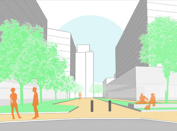 As more companies and large institutions have decided to move to Kendall Square, it has become a race of who can develop, design, and construct their buildings the fastest. The need for speed led to different designers and developers building out of sync with one another. This resulted in the Kendall Square we have today: a hodgepodge of new buildings and empty plaza spaces. My plan proposes to build a framework for existing and future construction, specifically on the current twelve-acre Volpe Department of Transportation site. My masterplan addresses the need for physical connections between three distinct hubs of Kendall Square: the T stop along Main Street, the Waterfront, and the Loughrey Walkway and Bike Path. These “connections” will be made through an intimate open space/greenway network. This network will enhance walkability for the area’s workers and residents, while it’s smaller scale will promote a more intentional personal experience for the public.