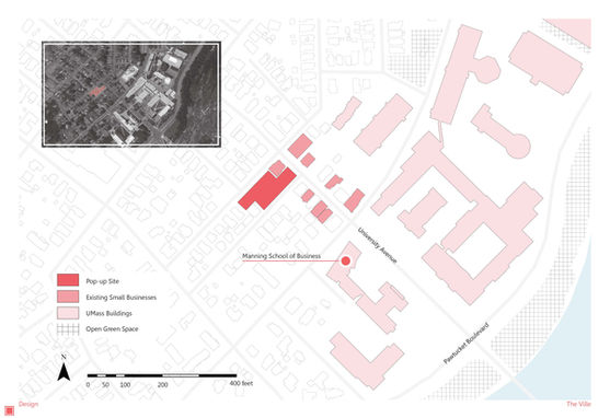 This group project proposes a Pop-Up Village, titled “The Ville”, in the neighborhood of Pawtucketville in the City of Lowell. This project is a result of a semester-long initiative in which students conducted research and engagement within Pawtucketville to develop various reommendations that addressed the needs of Pawtucketville. During this initiative, the world was faced with the threat of COVID-19, a virus which created an unprecendented pandemic leading to the shutdown of many businesses and a global state of suspended animation. We find that our project,“The Ville”, which seeks to provide a solution to the economic limitations in Pawtucketville, could be seamlessly reframed in the planning context of a Post-COVID-19 Pawtucketville.